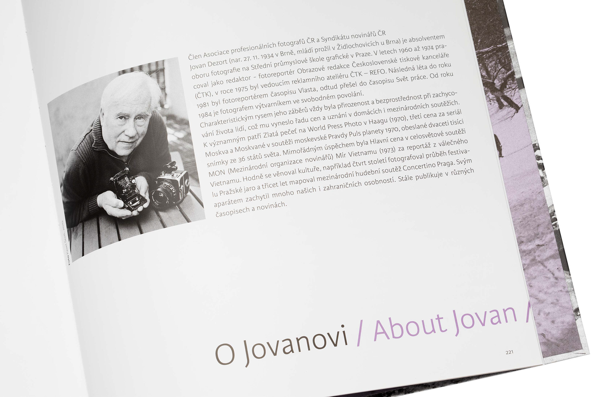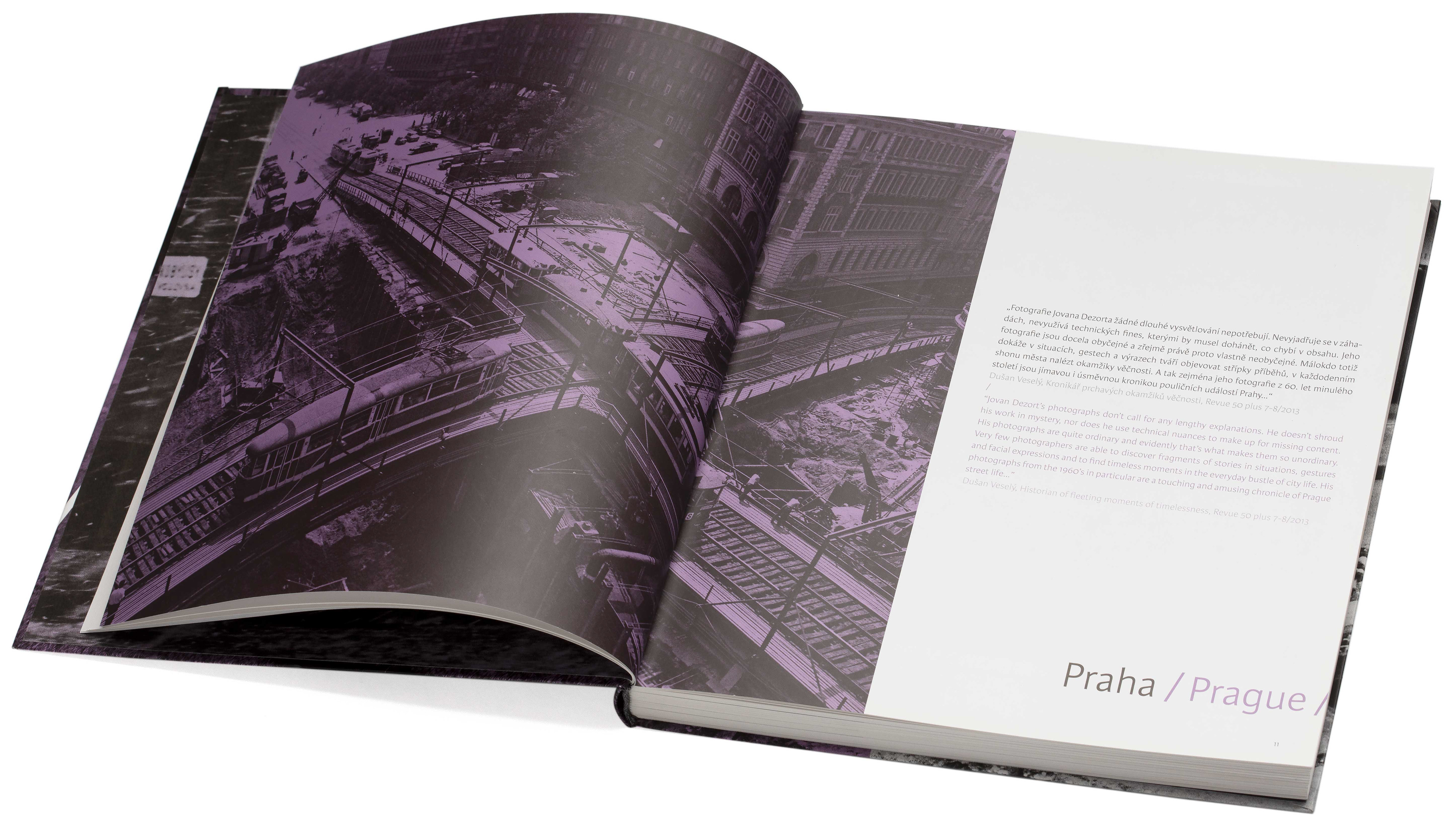 At the end of 2014, the Czech News Agency organized a retrospective exhibition of Jovan Dezort at the Staroměstská Radnice in the center of Prague. To commemorate the occasion, CTK commissioned us to create a book of the author's photos. The design of the book drove the entire visual concept of the exhibition, including items such as promotional posters, banners, tickets, and other materials. The book itself was printed using a special technique using 2 black inks to achieve deeper contrast and match the richness of the original images. This technique was provided by Aleš Prstek. We also had the pleasure of typesetting the book using Karmina Sans from Typetogether.
